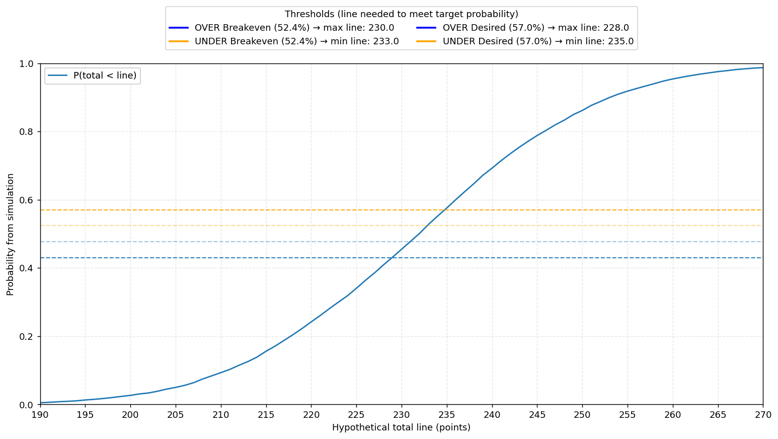 Even-Odds leverages a custom built play-by-play basketball simulation engine. I simulate thousands of games for each matchup at the possession level, and post the results here. I also track model performance vs actual results, and benchmark against the lines put out by sportsbooks.
